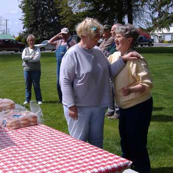 ![]() The following pictures show the efforts of volunteers led by Alf Martin to improve the cemetery with the planting of 67 five-foot spruce trees. The planting was followed by a community barbecue at the park. ![]()
